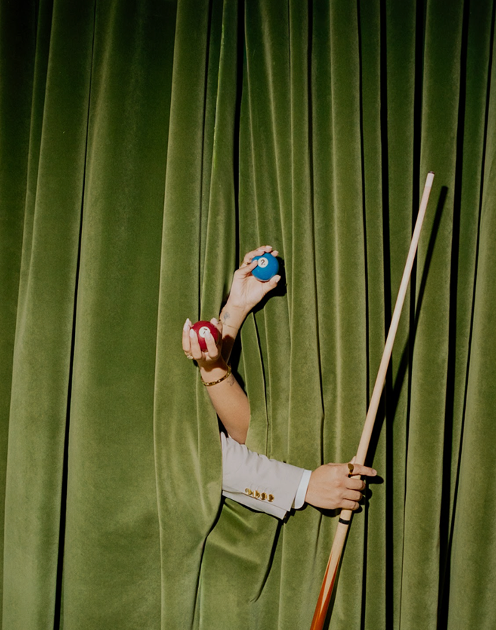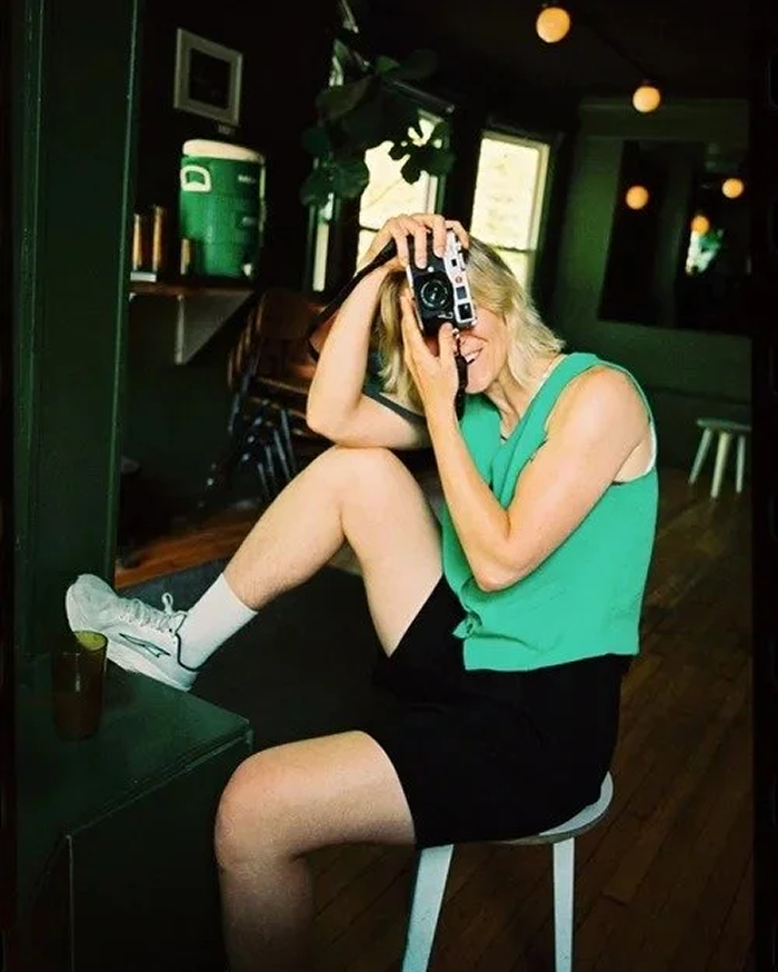 who works primarily with 35mm film, blending a documentary-style approach with vibrant, editorial flair.